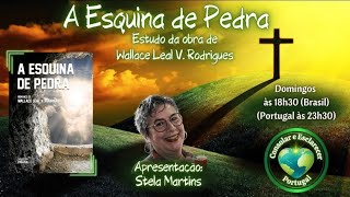 ão frequentes apenas. Então é bom a gente conhecer, saber qual é o processo dessas outras mediunidades, até para poder identificá-las quando elas acontecerem e estimular aqueles que estão em estudo da mediunidade, em desenvolvimento da mediunidade, que são os médiuns todos, né? Não existe o médium formado, o médium vai aprendendo e vai se construindo ao longo do tempo. Então, é bom a gente aprender a respeito das mediunidades todas. E essa que o Wallace eh eh teve enquanto encarnado como o Alace Rodrigues, o Alace Leo Rodrigues, é muito interessante. Vale a pena a gente dar uma pesquisada sobre ela. Então, já aqui falando sobre o sobre o livro, né, ele vai falar pra gente eh é uma história, né, um romance que vai contar a história do cristianismo, né, no começo do cristianismo. E isso é muito interessante, vale muito a pena. É por isso que a gente tá acompanhando, vai estudar esse livro para falarmos sobre esse período, né? Bom, e aí logo no começo do livro, olace Leal vai explicar pra gente por chamar esquina de pedra. E aí eu vou trazer para vocês o livro. Deixa eu tirar aqui. Opa, pronto. Vocês conseguem ler? Eu espero que vocês consigam. Opa, deixa eu passar para cá. Isso. Eu espero que vocês consigam, que esteja dando para ler direitinho aí. Bom, então ele começa com algumas citações para explicar porque eh porque esquina de pedra. Eh, Jó, capítulo 38 versículo 6. Sobre o que estão fundadas as suas bases? ou quem assentou a sua pedra de esquina. E aí em Salmos 1182, a pedra que os edificadores rejeitaram se tornou a cabeça da esquina. Em seguida, Isaías 28:16. Portanto, assim diz o Senhor Jeová: "Eis que eu fundo em Sião uma pedra, uma pedra já provada, pedra preciosa de esquina, que está bem firme e fundada. Aquele que crê não se aprece." E em Atos 4:11, esta é a pedra que foi rejeitada por vós, os edificadores, a qual foi posta por cabeça de esquina, pelo que também na Escritura se contém: "Eis que põe em Sião a pedra principal da esquina, eleita e preciosa, e quem