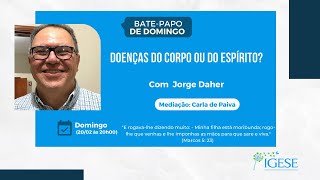 Bem-vindos ao Bate-papo de domingo do IGESE. Neste domingo com o tema "Doenças do Corpo ou do Espírito?" Com: Jorge Daher Mediação: Carla de Paiva Transmissão ao vivo às 20h00. Produção e realização: IGESE Parceiros de Transmissão: Rede Amigo Espírita, Web Rádio Fraternidade, TV CEECAL e TV Goiás Espírita.