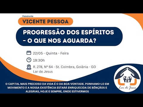 Palestra: Progressão dos espíritos - o que nos aguarda? Com Vicente Pessoa